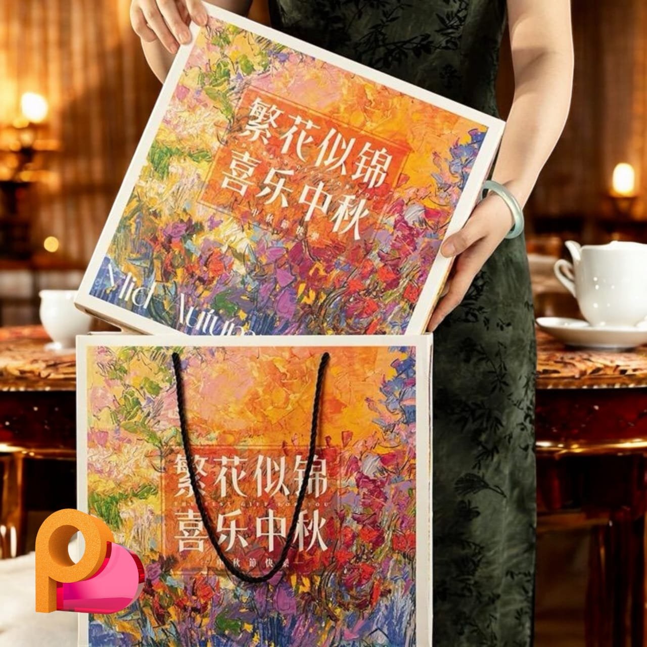 x 1 Floral Mooncake Box with paper bag